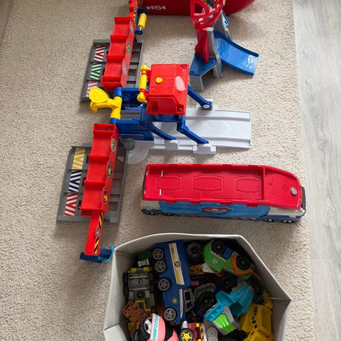 Paw Patrol racerbane legesæt. Sættet består af en tårnformet racerbane med flere niveauer og ramper, hvor køretøjer kan køre ned. Medfølgende lille køretøj i Paw Patrol-tema. Egnet som legetøj til børn, der kan lide figurer og køretøjer fra Paw Patrol-universet.