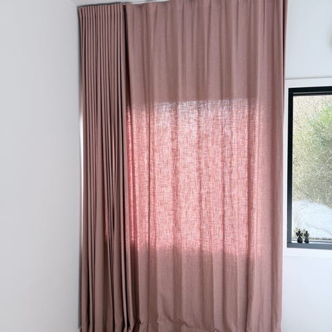 Smukke lette transperante gardiner fra Arne Aksel. Farven er rosa og stoffet hedder Air. Nypris 25.000 kr