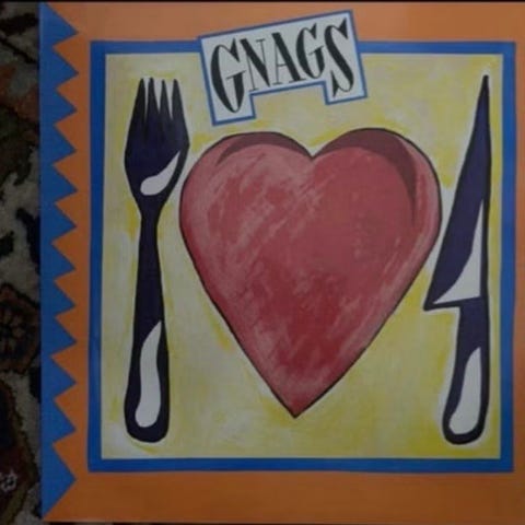 Gnags LP plader samling. Pakken indeholder fire vinylplader med album fra det danske band Gnags. Forsider og bagsider fremgår af billederne, hvor titler og coverart kan ses. Velegnet til samlere af dansk rock og til afspilning på pladespiller, hvor man ønsker originale LP udgivelser fra bandet.