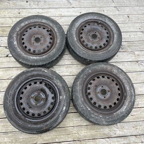 Har de her stål Fælge har original hjulkapsler to af dækkene skal nok skiftes de to andre er der godt med mønster ca 5 mm på dækkene er fra 2021
