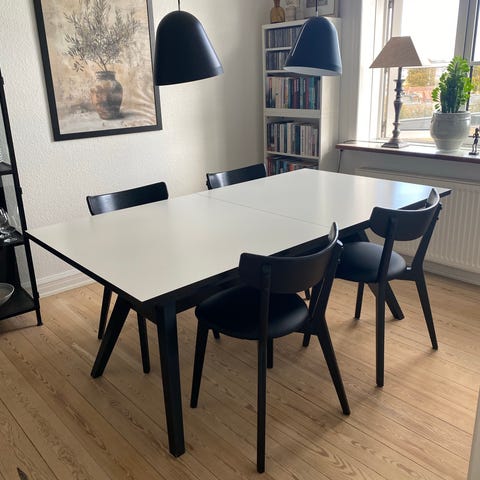 Vi sælger vores spisebord grundet flytning. Vi har været så glade for det da det har en god størrelse og kan forlænges på et split sekund. Med 2 indbyggede plader.