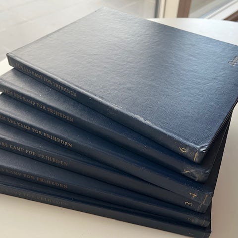 Samling af ældre danske bøger. Blandt andet "Besættelse" af Hans Kirk, udgivet på Forlaget Fremad, København, samt "Soldaterarbejdere fortæller" udgivet af K.F.U.M.s Soldatermission i Danmark 1945. Bøgerne omhandler blandt andet den tyske besættelse af Danmark, soldaterliv og historiske uniformer. Velegnet til samlere eller som kildemateriale om dansk historie og besættelsestiden.