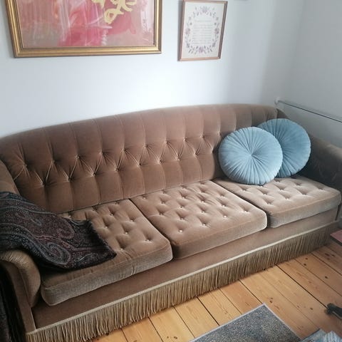 Flot sofa i lysegrå velour