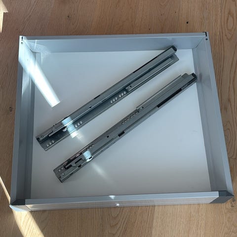 Udtræksbakke/skuffe hvid - Til M40 skab - Indv. bredde: 368mm H:199mm D:500mm - Inkl. skinner og afstandsstykke - ULTRABOX