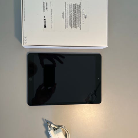 Apple iPad tablet med 128 GB intern hukommelse. Enheden har touchskærm og fysisk hjem-knap på fronten. Velegnet til almindelig brug som internet, streaming, apps og spil samt til skole- og kontoropgaver. Understøtter trådløst netværk og opladning via Lightning-stik. Fungerer med iPadOS og adgang til App Store for installation af apps.