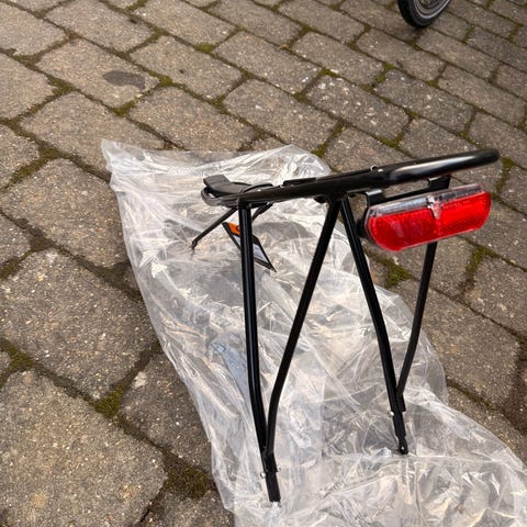 Bagagebærer i sort metal med refleks. Passer til 28” hjul.