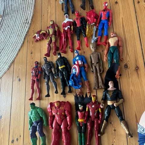 13 superhelte figurer i god stand. Nogle af dem har synlige brugsspor.