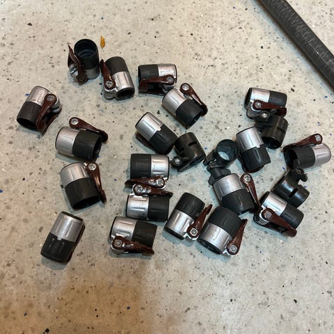 Teleskopiske metalrør til afstivning af telt.