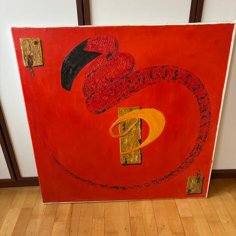 Produktet er en farverig kunstplade med abstrakte mønstre og linjer. Den viser flere farver og personlig præsentation.,Bemærk at mail, chat og beskeder ikke besvares, og varen skal købes på knappen "Gå til varen"