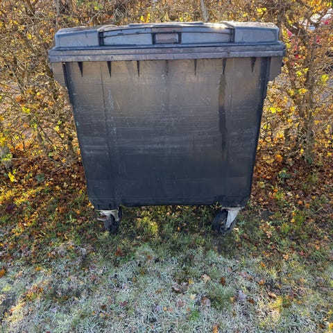 Perstorp Form affaldscontainer i grøn plast. Beholderen er udstyret med låg og to hjul, så den er nem at flytte rundt. Velegnet til opbevaring og håndtering af affald eller haveaffald udendørs. Fremstillet i robust plastmateriale, der tåler udendørs brug.