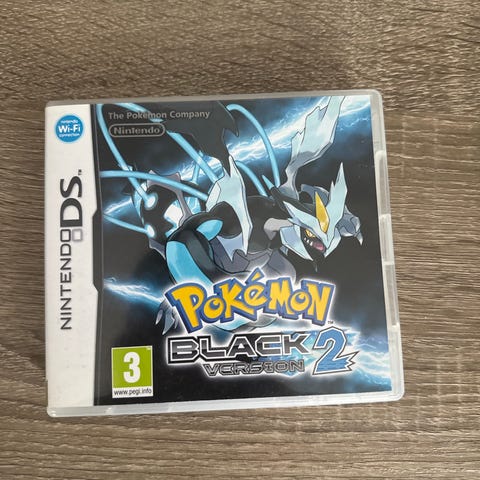 Nintendo Pokémon Black Version spil til Nintendo DS. Fysisk spilkasette med originalt cover og manual, som vist på billederne. Spillet er PEGI 3-mærket og er kompatibelt med Nintendo DS-systemer, herunder Nintendo DS, DS Lite, DSi og 3DS-konsoller med DS-kompatibilitet. Genren er rollespil (RPG) i Pokémon-serien, hvor spilleren udforsker en region, fanger og træner Pokémon og deltager i kampe. Alle viste dele på billederne indgår i annoncen.