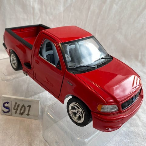 Pick-Up, Blå: ”=S” Sunnyside No SS 5603. Trade Mark. Ford F- 100 Picfk-Up, 1956. From Ford Motor Company. Made in China. Used Under License. Scale: 1:36. Sidedøre og bagklap kan åbnes.