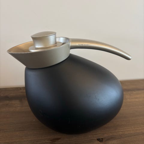 Flot Georg Jensen Quack termokande i hvidt design med grå metalfarvet låg og hank. Velegnet til servering af varme eller kolde drikke i køkken eller spisestue. Moderne, afrundet form som står stabilt på bordet. Materiale fremstår som plast med metal-/metal-look detaljer. Meget flot indeni. Sender gerne. 200kr