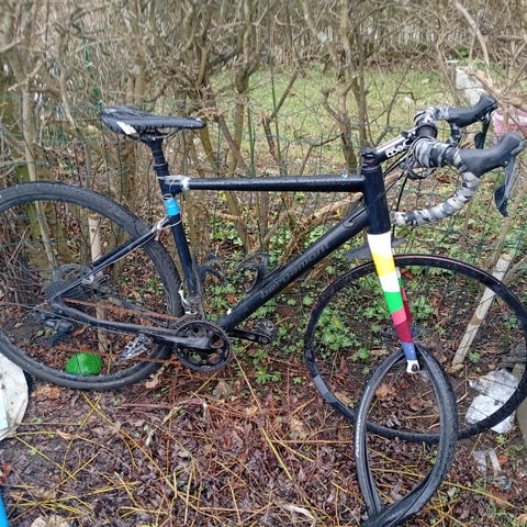 Gravel bicycle which I bought a year ago for 2800dkk on facebook marketplace. Need to sell as we are leaving Denmark. Still works well. Great for road tours and roads with gravel. Wheels are puncture resistant. Can also include bicycle lock in last photo and mud guard which was added.