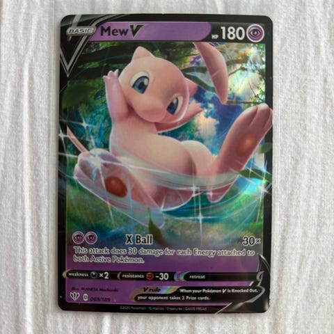 Pokémon Mew VMAX Fusion Strike samlekort. Kortet viser Mew VMAX fra Fusion Strike-udvidelsen af Pokémon Trading Card Game. Velegnet til samling eller som del af et spildeck i Pokémon TCG.