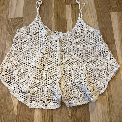 Håndhæklet top i 100% bomuld.