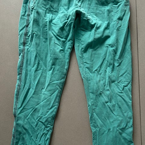 Buksen er med elastik samt bindebånd foroven, og har en lomme i hver side. Sort pynte stribe i siderne.
