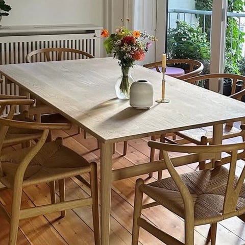Hans J. Wegner: “PP 70”. Rundt spisebord af massivt egetræ, to tillægsplader med finér. Udført hos PP Møbler. H. 70. Diam. 140. L. 260. Nypris: 73.995 kr. + tillægsplader.