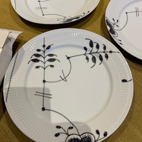 De fire middagstallerkner har lidt spor efter kniv og gaffel, se sidste billede.