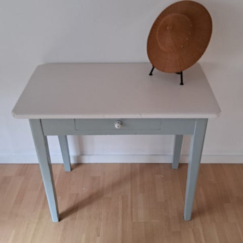 Fint skrivebord i massivt træ. Enkelte slidmærker. Let og praktisk.