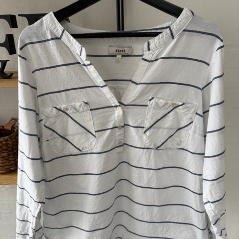 Zizzi bluse til kvinder i størrelse XL. Blusen er hvid og fremstillet i polyester. Den har lange ærmer, rund hals og dekorativ blonde- eller broderidetalje øverst på forstykket. Længden går cirka til hofterne, og pasformen er let løs. Velegnet som hverdags- eller kontorbluse, eventuelt med top indenunder afhængigt af ønsket udtryk.