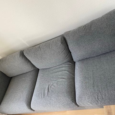 Siddehøjden er 44 cm. Sofaen er købt februar 2024. Betrækket er ikke slidt og siddekomforten er intakt. Kommer fra hjem med hund, men er ikke fyldt med hundehår, så skriver det blot ift. eventuel hundeallergi.