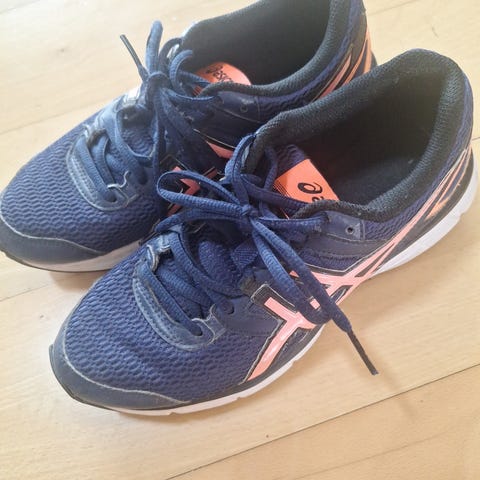 Asics løbesko til løb i størrelse 38. Skoene er lyserøde med lysere detaljer og snørelukning. Overdelen er i syntetisk fiber og syntetisk læder, og sålen er i gummi. Velegnet som løbesko eller til anden træning, hvor der ønskes en let sportsko med gummisål.
