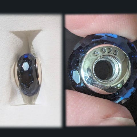 Spritny sød Charm kugle der kan åbnes, med pote print og små Zirkoner. I sterling sølv.