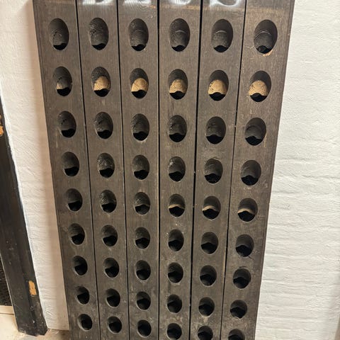 Blondel champagne flaskeholder i træ. Stativet er udført i massivt træ med flere rækker skråtstillede huller til opbevaring eller præsentation af champagneflasker. Velegnet som dekorativ vin- eller champagneholder i hjemmet, barområde eller vinkælder.