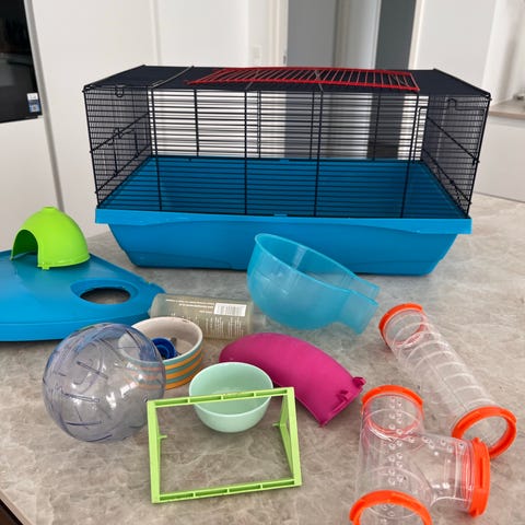 Træbur gnaverbur med glaslåger og ramper