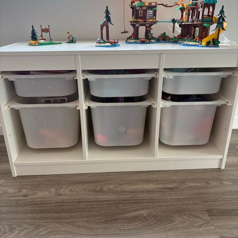 IKEA TROFAST opbevaringsreol med plastkasser hvid med sorte kasser