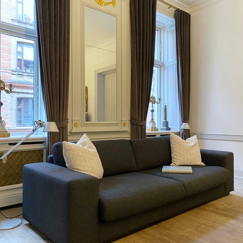 Virkelig lækker sofa med det rette "hotel-lounge look", der passer perfekt til f.eks. både den store elegante og stilrene funkis-villa i Hellerup og den imponerende 7-værelses Østerbro-lejlighed med både stuk og høje paneler.