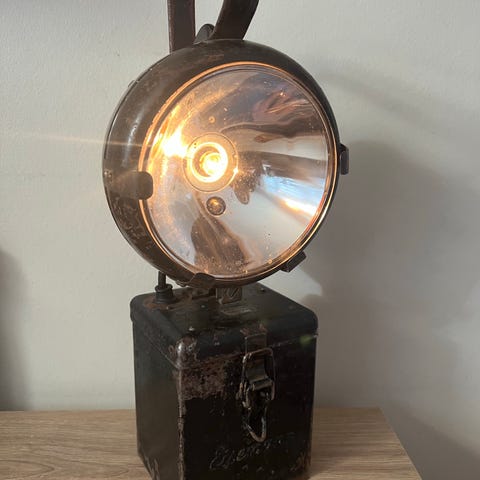 Original Eisemann industrilampe fra et sted mellem 1930-50’erne i fin og hel stand med flot patina H37cm isat ledning til stikkontakt mp 1500kr afhentes i 8570 Trustrup eller sendes for 65kr (Har 2 stk)