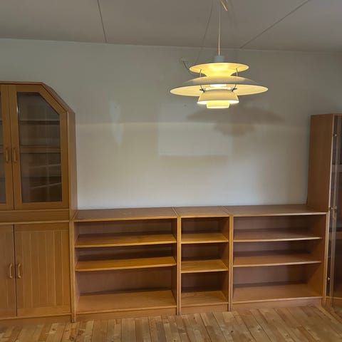 Hver overdel måler (HxBxD) 56x110x27 cm og underdelen måler 56x110x38 cm.