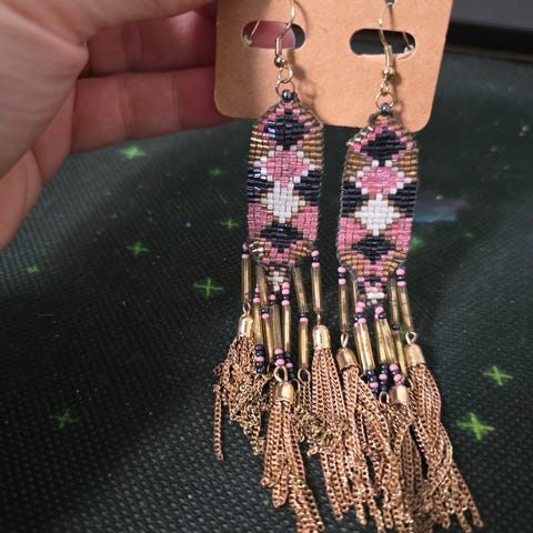 Små sorte øreringe med en lille kugle. Diameteren er ca 7 mm