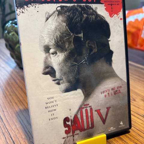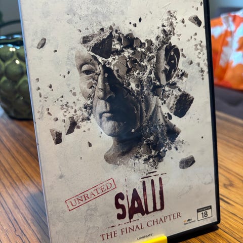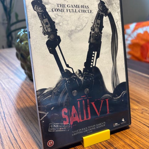 Saw dvd film i standard dvd-format. Forsiden viser titel og grafisk motiv, bagsiden indeholder kort handlingsbeskrivelse, credits og tekniske oplysninger om filmen. Velegnet til afspilning på dvd-afspillere, der understøtter almindelige dvd-film.