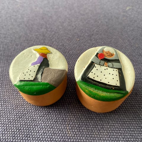 HIRSVANG keramikfigur med ansigt og briller. Figuren er udført i lys keramik med håndmalede detaljer som blå briller, øjne, kinder og mund. Signeret "HIRSVANG" i bunden. Velegnet som dekorationsfigur i hjemmet, f.eks. på hylde, reol eller vindueskarm.
