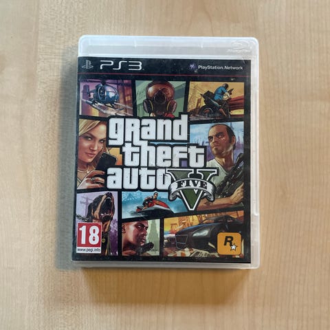 Rockstar Games Grand Theft Auto V PlayStation 3 spil. Fysisk udgave i plastcover til PS3-konsol. Spillet er PEGI 18-mærket