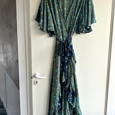 Sissel Edelbos tøj er lavet af upcyclede vintage sarier. Derfor kan der forekomme små variationer eller uregelmæssigheder i stoffet, som er en naturlig del af materialet og gør hvert stykke tøj unikt.