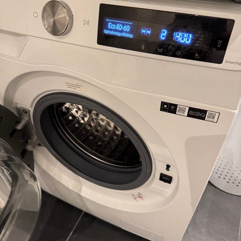 Samsung frontbetjent vaskemaskine i hvid. Maskinen har frontbetjent låge og digitalt display med programindstillinger. Egnet til almindelig tøjvask i husstande, hvor der ønskes en standard frontbetjent løsning. Maskinen tilsluttes vand og afløb som en traditionel vaskemaskine og placeres fritstående eller under bordplade, afhængigt af mål og installation.
