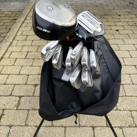 Sælger et komplet og spilklar golfsæt med alt hvad man skal bruge til 1600 (eller højest bydende). God blanding af solide Fuko-jern og mærkevarer fra Callaway og Wilson.