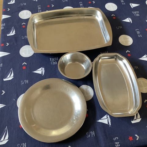 IKEA stål serveringssæt tallerkener og skåle sølvfarvet