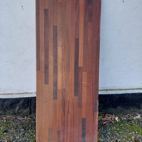 Kvadratisk bordplade i brunt træ. Velegnet som bordplade til fx sofabord, sidebord eller mindre spisebord. Træet har synlig årestruktur og fremstår ubehandlet eller let behandlet. Kan bruges til gør-det-selv projekter eller udskiftning af eksisterende bordplade.