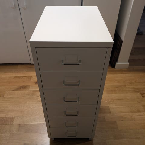 Hvid brugt Skuffeelement, Stålskab, Arbejdsredskab HELMER IKEA. Læs annoncen tak