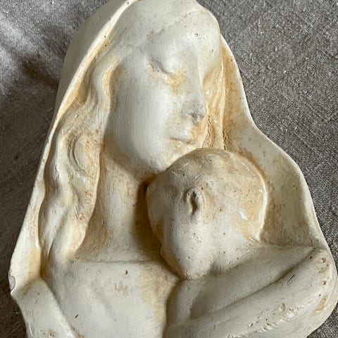 Vægrelief af pige, Vægrelief af sortmalet gips i form af pige med hestehale