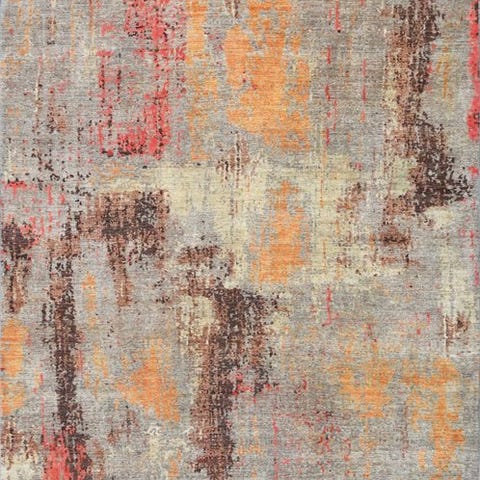 Der udbydes et moderne designer-tæppe i uld med meget stor silkeandel.
