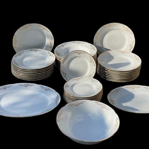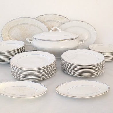 Elegant service til bordet produceret af Manifattura di Laveno for Richard Ginori Group, genkendeligt ved det grønne mærke med sejl og dato 1856.