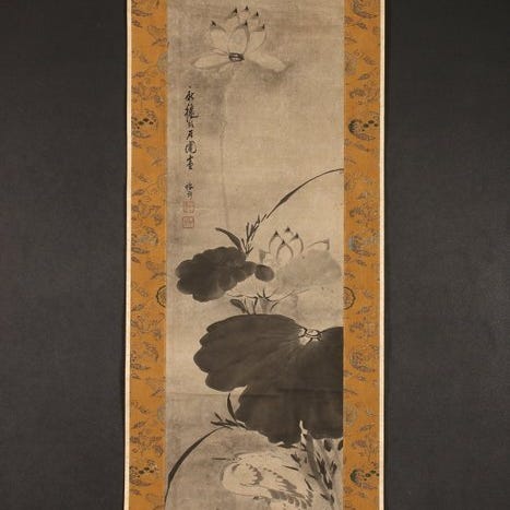 Meget fint sumi-e-maleri "Serene village in mountains", signeret – inklusive ...