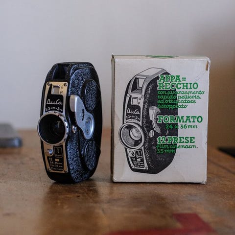 Krasnogorsky Mechanichesky Zavod FT-2 35 mm russisk panoramakamera, serienummer 67702, fra 1950–1960, fysisk særdeles god, testet og funktionsdygtig, fast fokus og fast blænde, 24×110 mm panoramabilder med 12 optagelser pr. film og inklusive originale filmmagasiner. Klik på den blå "gå til varen" knap, for at købe eller byde på denne vare. Den samlede pris vil blive vist inden du afgiver dit bud.