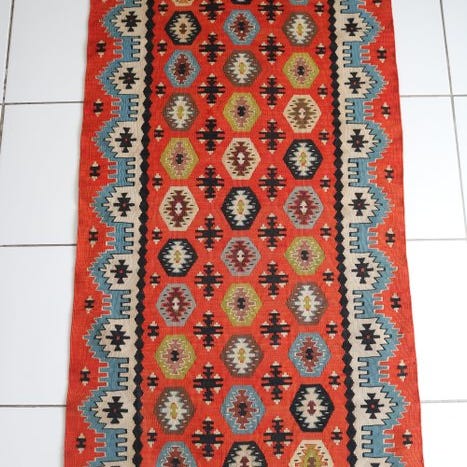 Det er et tæppe vævet efter traditionelle motiver fra Yuruk-regionen.